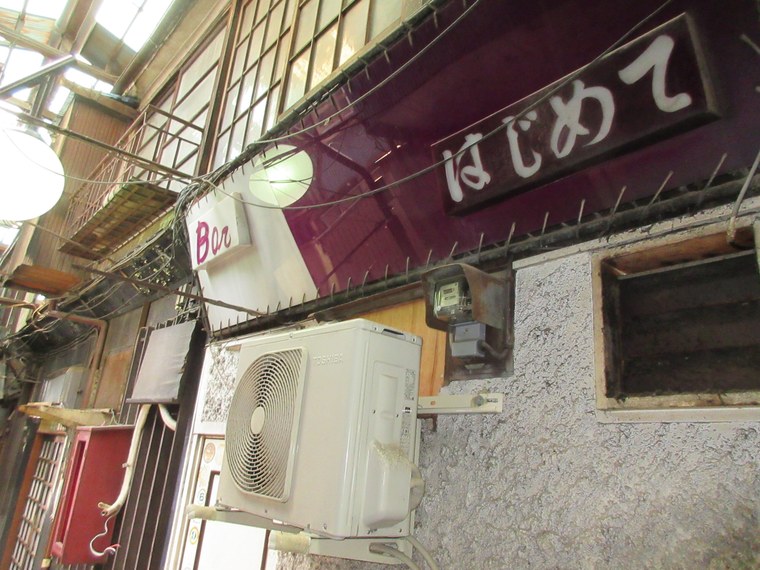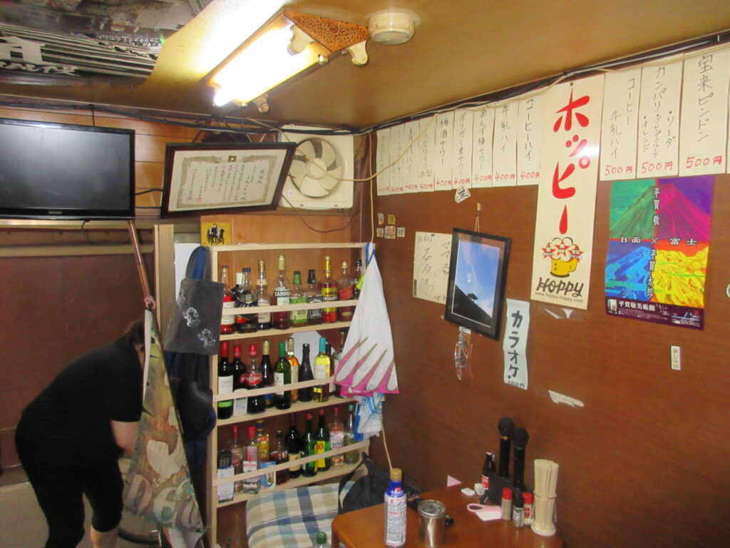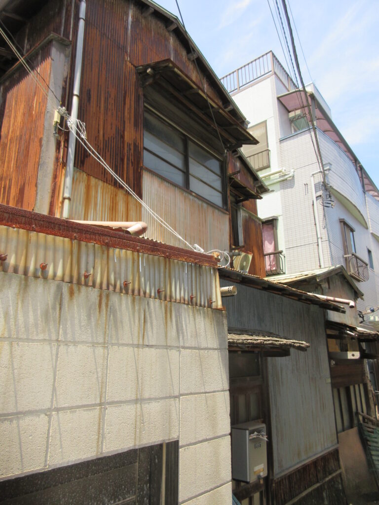 呑んべ横丁を訪れた際、誰もが目を見張るのは、昭和からそのままタイムスリップしてきたような木造長屋の建築である。